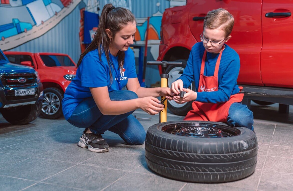 Вот уже три года действует игровая станция КАН АВТО с неигрушечным «Мерседесом» в Детском городе КидСпейс. Любой ребенок может примерить на себя профессию автомеханика, поменять колесо, заглянуть под капот или попробовать себя в качестве эксперта известных автомобильных брендов.