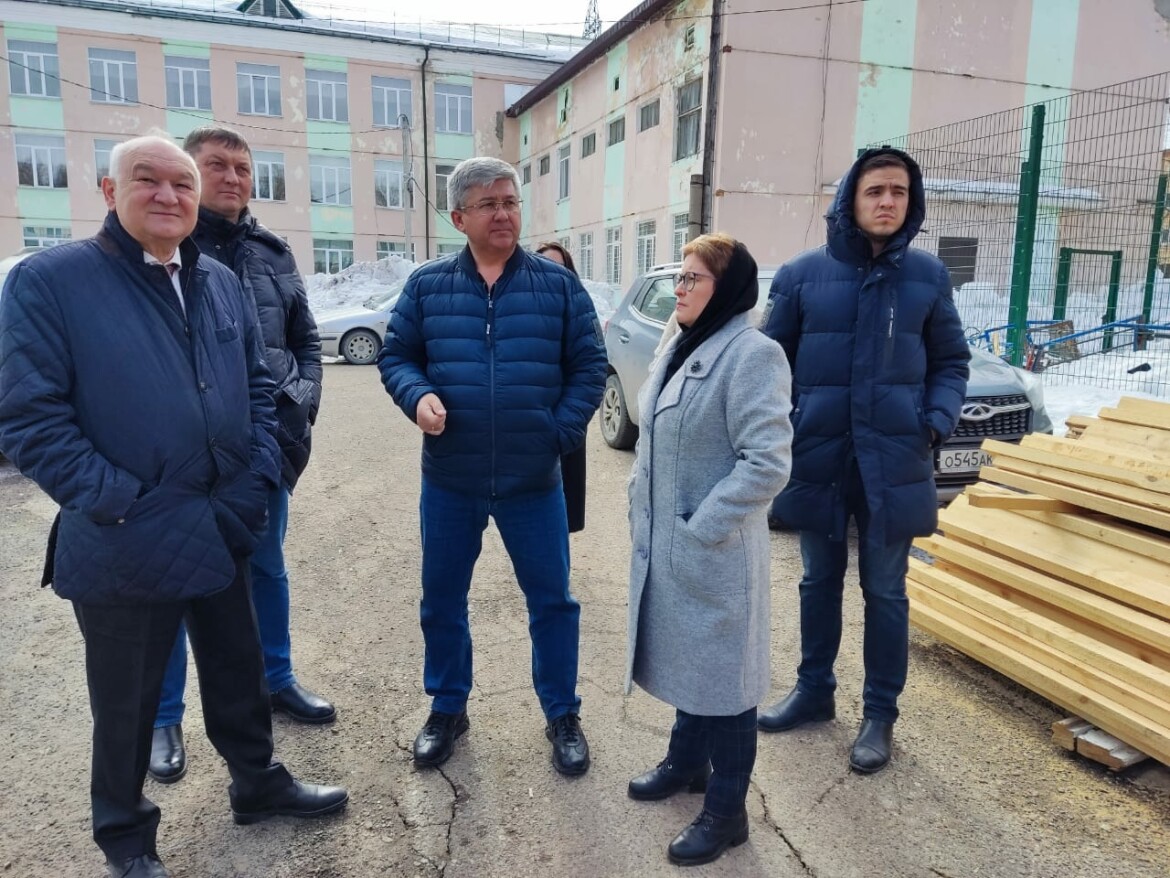 Ремонтные работы кипят и в школе № 2 в поселке Васильево. Михаил Афанасьев и депутат Госдумы РФ Ильдар Гильмутдинов побывали на объекте, осмотрели стройку и дизайн-проект здания.