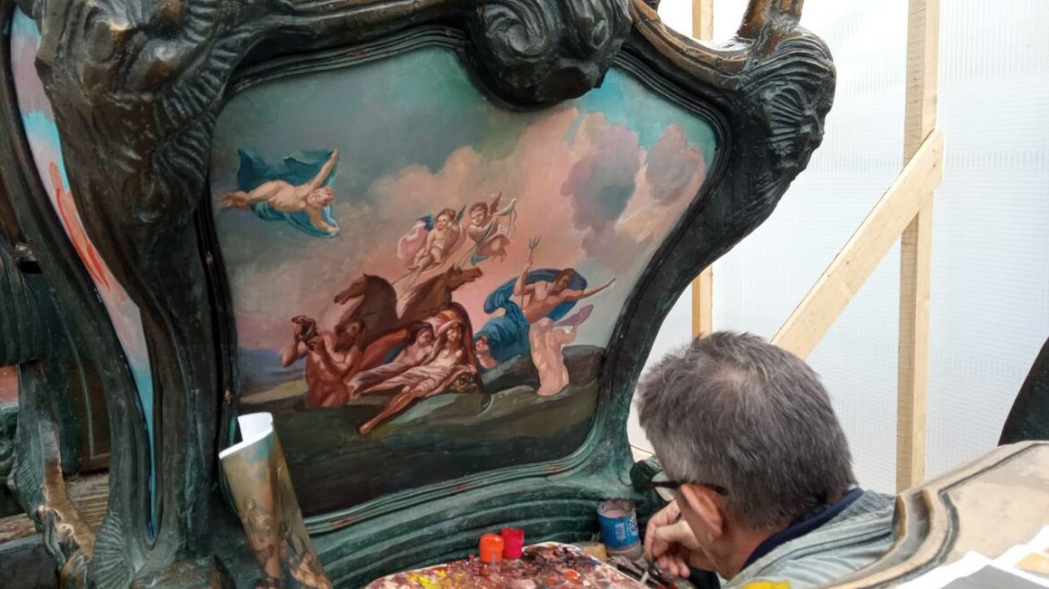 Бизнес-сообщество улицы Баумана предложило восстановить художественное оформление экипажа в честь 255-летия с того момента, как императрица подарила городу свою карету. Расписывает памятник член Союза художников РТ Ильнур Бакиров.