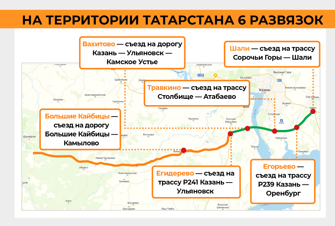 Уже известно, что через каждые 50-80 км трассы разместятся объекты дорожного сервиса. В Татарстане будет шесть многофункциональных зон. На них будут открыты зоны отдыха для водителей и пассажиров. А также автозаправочные станции.