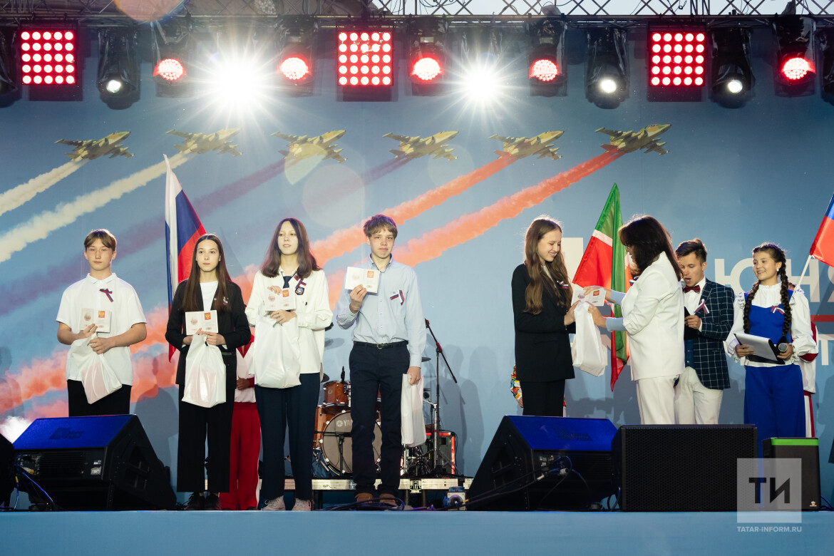 Помимо этого, в рамках акции «Мы граждане России» десяти юным казанцам, имеющим достижения в учебе и общественной деятельности, вручили паспорта. Документы школьники получили из рук вице-премьера Татарстана Лейлы Фазлеевой. Перед торжественной церемонией награждения она поздравила казанцев и гостей столицы республики с Днем России.