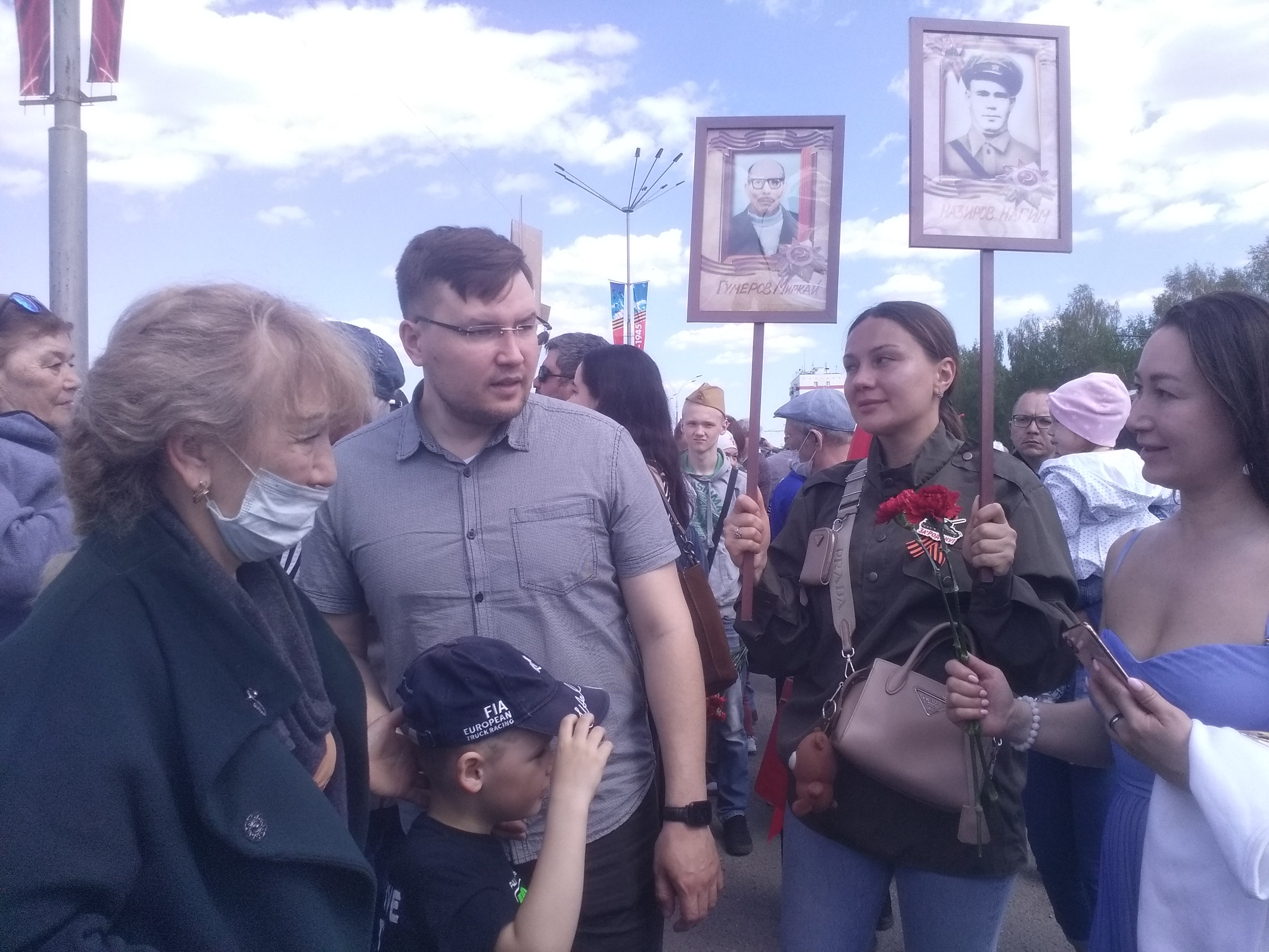 К мемориальному комплексу «Родина-мать» челнинцы начали подходить задолго до начала торжества. Многие пришли с детьми, некоторые принесли с собой плакаты с фотографиями родственников, цветы.