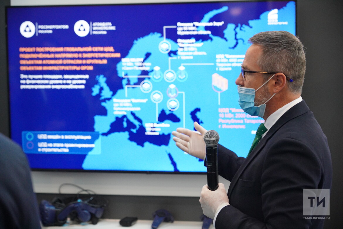 На другом, соседнем, стенде заместитель генерального директора концерна «Росэнергоатом» Сергей Мигалин рассказал о планах концерна построить в Иннополисе Центр обработки данных (ЦОД) федерального уровня стоимостью в 9 млрд рублей.