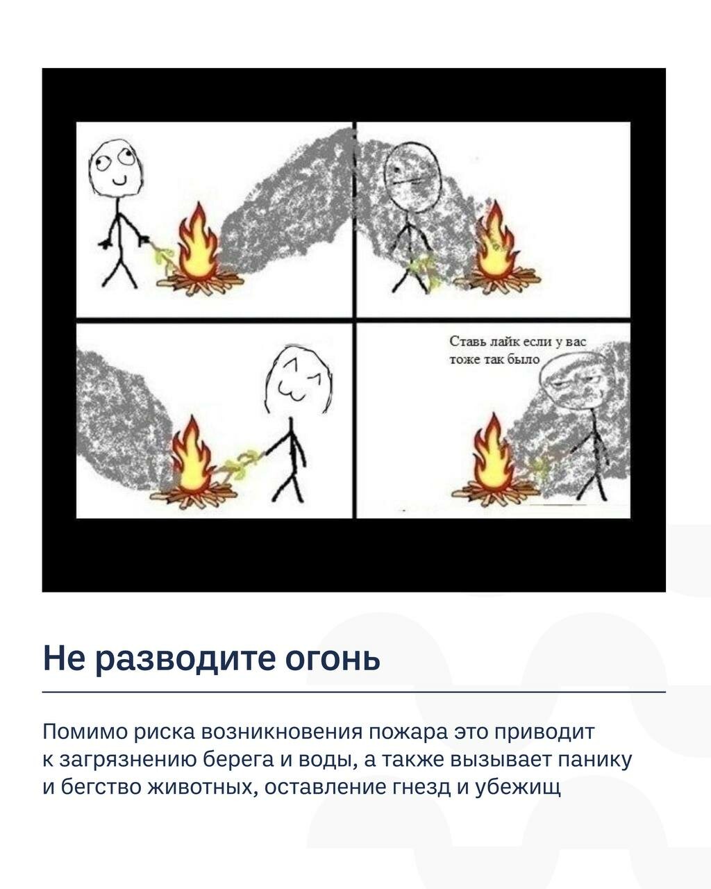 3.Разведенный огонь существенно увеличиает риски возникновения пожара, загрязнения воды и пугает животных и птиц.