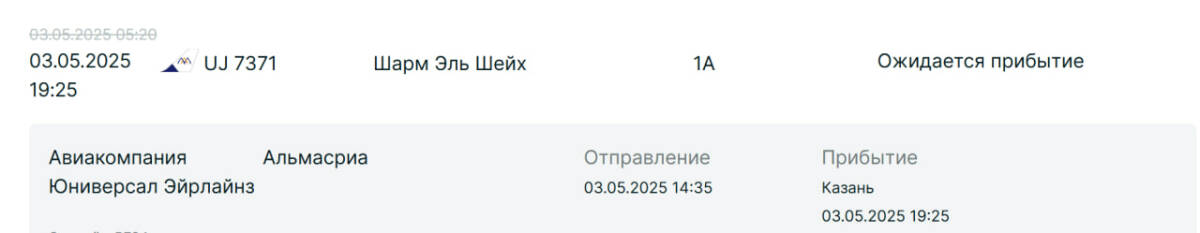 Согласно информации, размещенной на онлайн-табло казанского аэропорта, вылет был запланирован на 05:20 утра. Однако, по неизвестным причинам, рейс был перенесен на более позднее время. Теперь прибытие самолета в пункт назначения ожидается в 19:25.