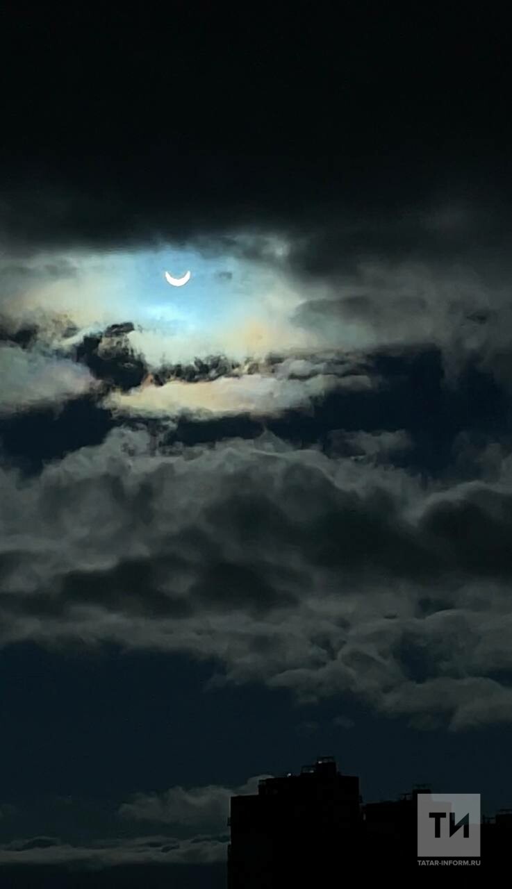 Жители Татарстана сегодня наблюдали за солнечным затмением, пасмурная погода не смогла этому помешать. Ранее «Татар-информ» сообщал, что в Казани затмение будет длиться более двух часов — с 12.36 до 15.02. Максимальная фаза затмения была в районе 13.50 – в этот момент Солнце было закрыто Луной примерно на 72,75%.
