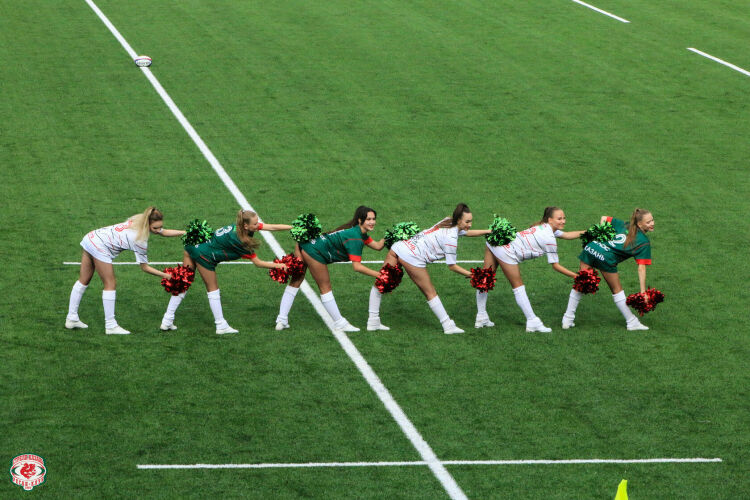 Как и в предыдущей домашней игре, сегодня хозяев поддерживали болельщики и дюжина девушек из группы поддержки хоккейного «Ак Барса» — «Барсы-ангелы». А вот программка на матч появилась впервые. И с погодой регби повезло: жара отступила и даже легкий дождик во время игры пошел. Пришлось даже осветительные матчи задействовать.