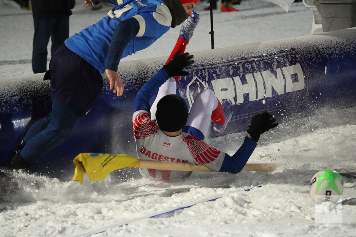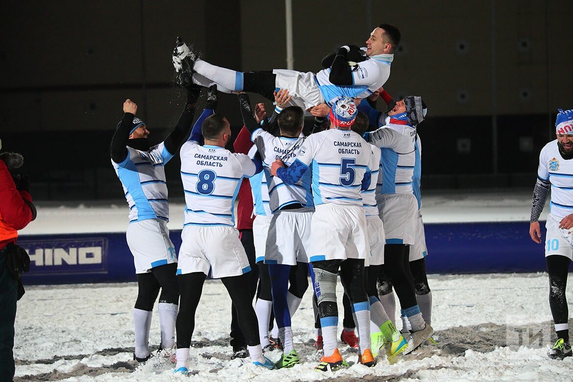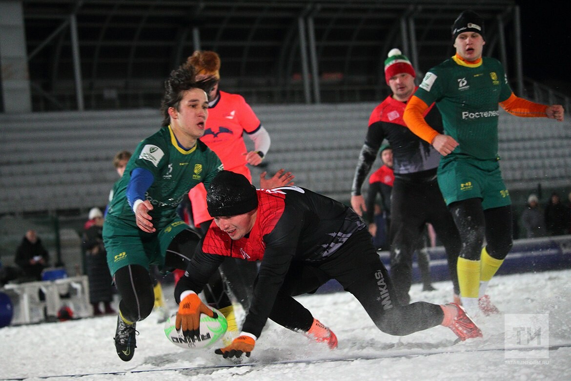 На заснеженном поле стадиона «КАИ Олимп» на участке 30 на 25 метров команды соревнований в формате «пять на пять». Два тайма по пять минут с минутным перерывом. Особенное регби. Без ворот и поэтому без штрафных ударов и реализаций. Но с минутными удалениями и попытками, то есть заносом мяча за зачетную линию. Не мудрено, что лучшим игроком чемпионата был признан самарец Денис Муляр.