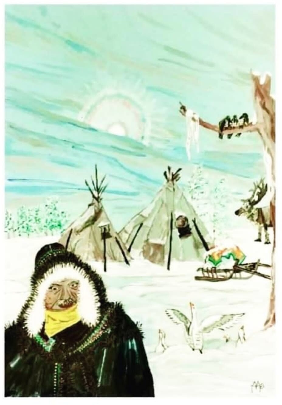 Фото: Марина Абрамова, "Долганские снега", 2022 год. Бумага, акрил, роллер. 30х42 см. / Предоставлено Ладой Аюдаг