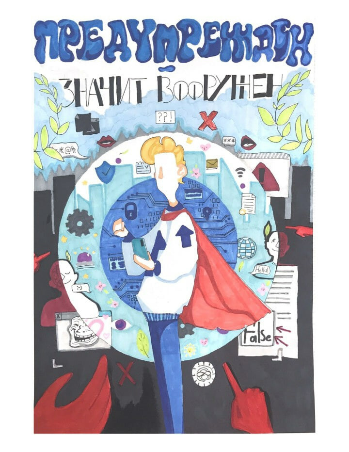 Анализ работ участников показал, что для современных учащихся тема информационной безопасности чаще воспринимается как борьба с вредоносными программами, взломом учетных записей из-за ненадежных паролей или денежными потерями при атаке мошенников. В их представлениях киберпреступник — это хакер под черным капюшоном или бандит с темной повязкой на глазах. Однако такое видение не дает полной картины — ведь опасность может скрываться и за дружелюбным ликом анонимного друга.