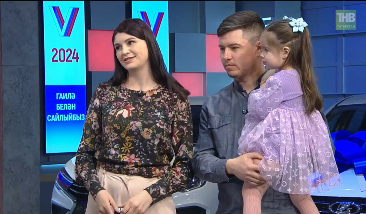 Семья Хуснутдиновых из Лаишевского района РТ выиграла во второй день. Они выложили фото с участка и в браслете «Всей семьей на выборы» в аккаунте супруги Алины Хуснутдиновой. Семья живет в поселке Усады Лаишевского района, родители воспитывают 2-летнюю дочь, мама в декрете, а папа — самозанятый.