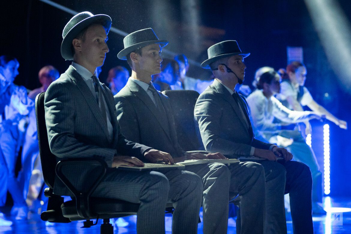 Начался концерт с показа региональной программы от студентов КНИТУ. Суть зарисовки в том, что офисный работник вспоминает всю свою жизнь с момента учебы, ищет в ней новые краски и осознает свои ошибки.