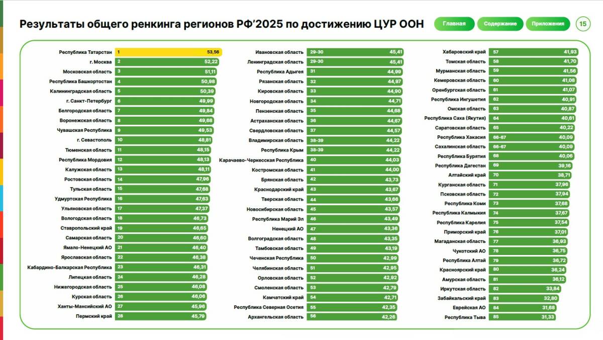 Татарстан стал лидером рейтинга достижения целей устойчивого развития