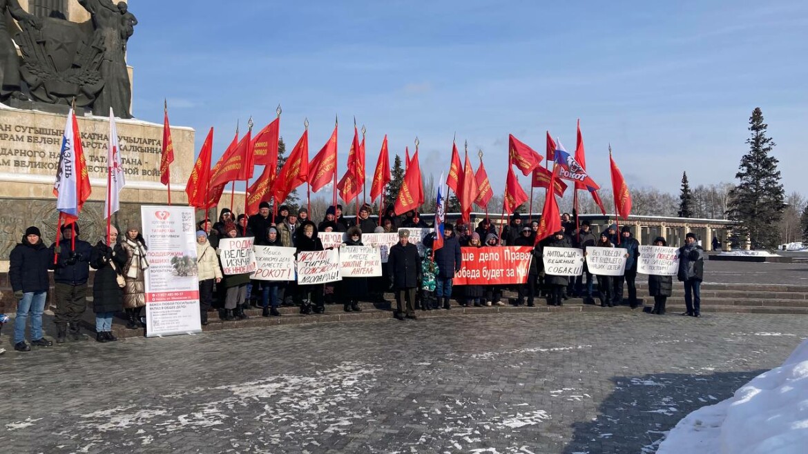Сегодня, в День защитника Отчества, сторонники партии «Коммунисты России» провели у парка Победы массовый пикет в поддержку специальной военной операции на Украине и участвующих в ней бойцов.
