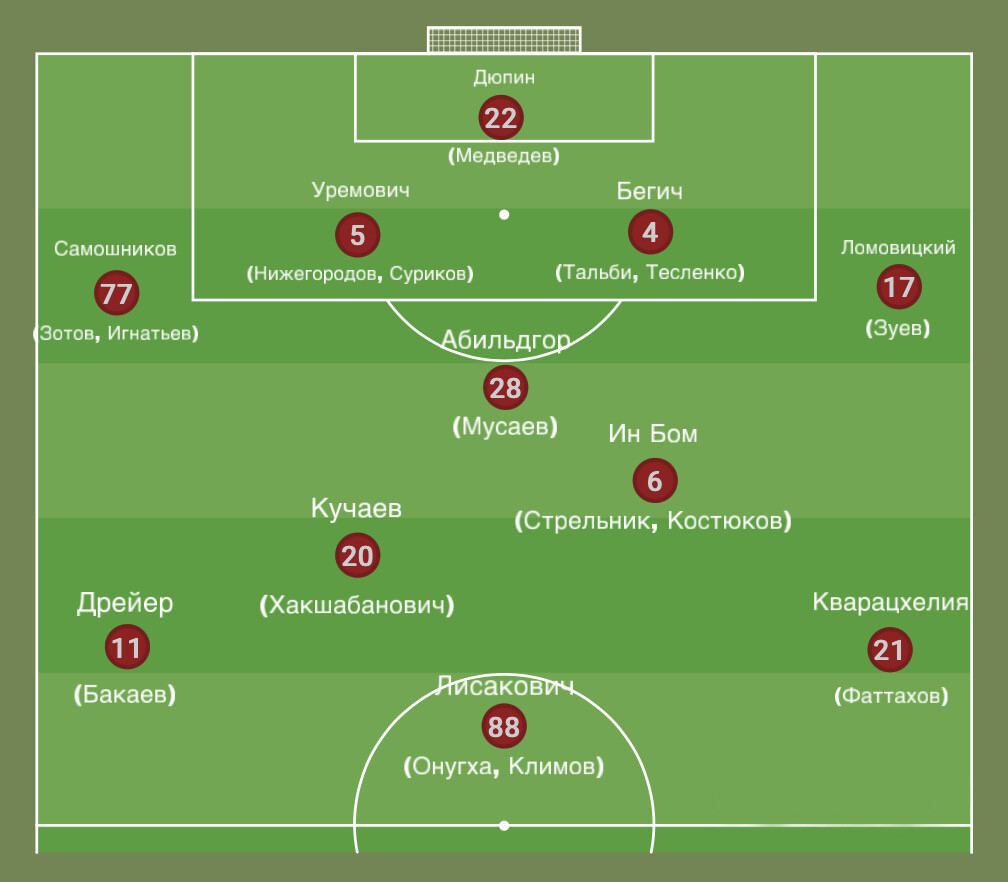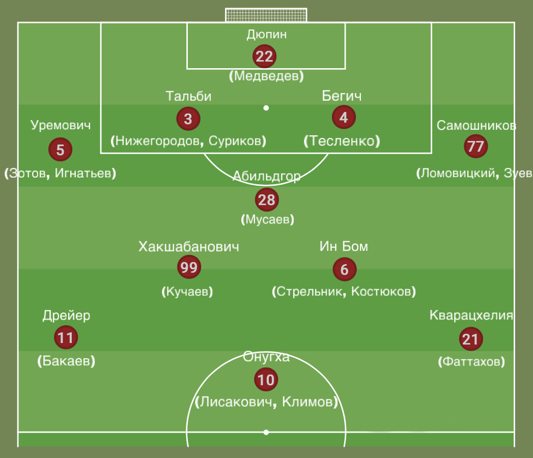 Из проверенных исполнителей, способных сыграть в центре поля, в распоряжении Слуцкого имеются всего двое – Абильдгор и Ин Бом. В идеальный день, когда оба футболиста здоровы и не дисквалифицированы, в полузащите будут выходить именно они. Третьим чуть выше на роль десятки напрашивается Кучаев, не зря же Слуцкий так старался заполучить его из ЦСКА. Однако из-за травмы на поле Константина мы пока так и не видели. Поэтому пока нельзя сказать точно, какие планы на полузащитника имеет главный тренер. Неплохой опыт игры в центре поля за первую половину сезона получил и Сеад Хакшабанович.