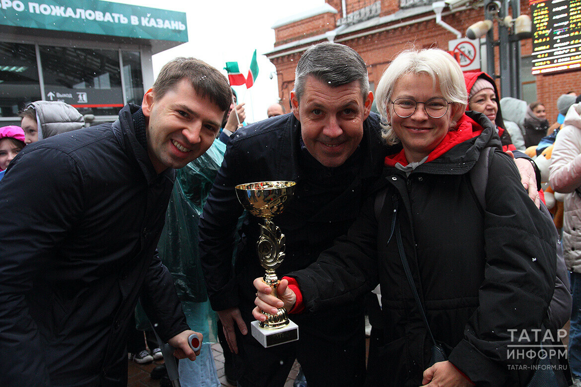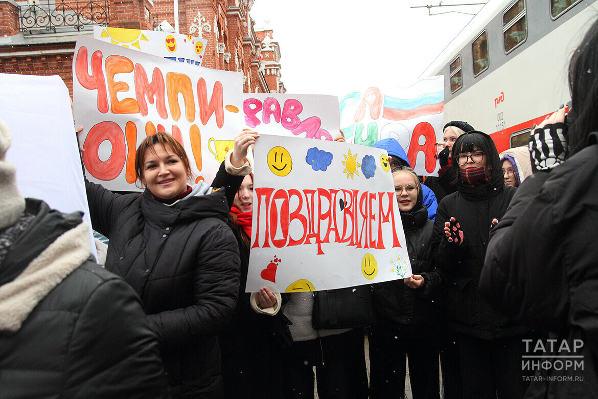 Победителей на перроне встретил генеральный директор АНО «Центр развития профессиональных компетенций РТ» Эмиль Губайдуллин.