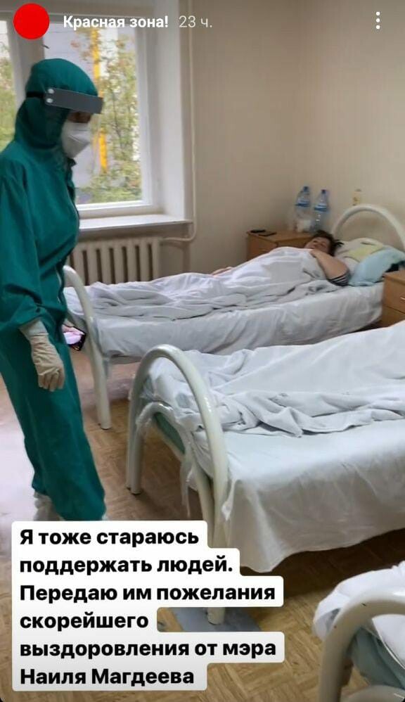 Начальник Управления информационной политики и по связям с общественностью города Набережные Челны Римма Мухаметзянова сняла репортаж в «красной зоне» временного ковидного госпиталя в горбольнице №5. Такое задание во время аппаратного совещания в мэрии дал ей мэр Автограда Наиль Магдеев. По его словам, ситуация с распространением Covid-19 остается напряженной, при этом «тема вакцинации с повестки ушла».