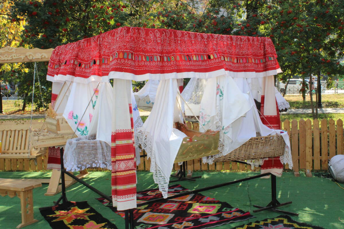 В старину наличие ткацкого станка в доме означало достаток семьи. На поляне мастерицы на ткацких станках проводили мастер-классы по ткачеству из цветных нитей. Во время экспозиции все желающие смогли освоить азы работы и принять участие в воссоздании традиции семейного ткачества.