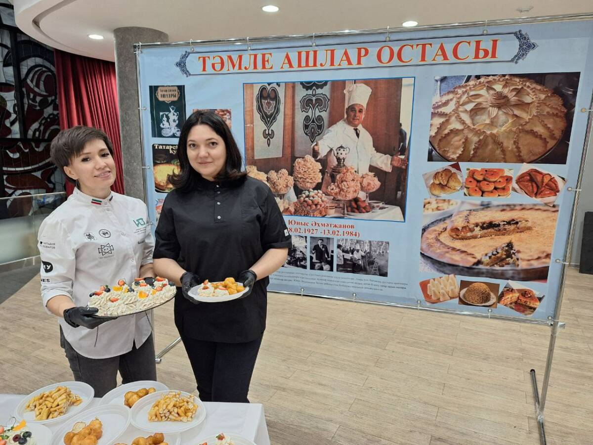 Наряду с татарскими национальными блюдами на экспозиции были представлены изысканные современные блюда — пирожные Павловой, орешки из кабачков, конверты из блинов и другие.