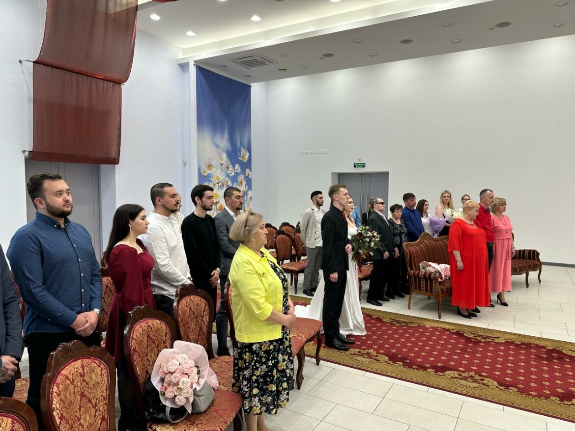 Всего на торжественную регистрацию брака 24.04.2024 завяления подали 50 пар влюбленных. По словам работников загса, это своеобразный рекорд. Следующая красивая дата планируется 15.05.2024 — международный день семьи.