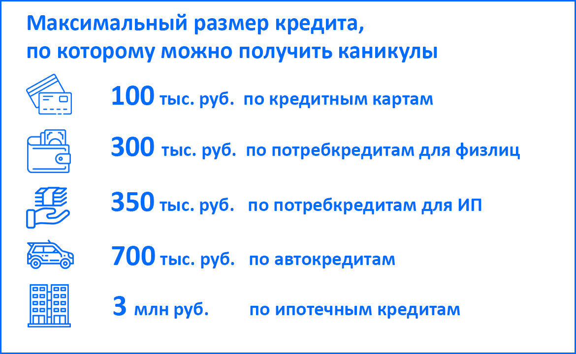 Для кредитов, по которым можно получить каникулы, установлен максимальный размер: