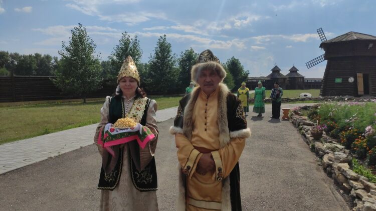 На входе на территорию музея-заповедника туристов встречает «хан» со своей спутницей — они угощают гостей чак-чаком и приглашают гостей внутрь.