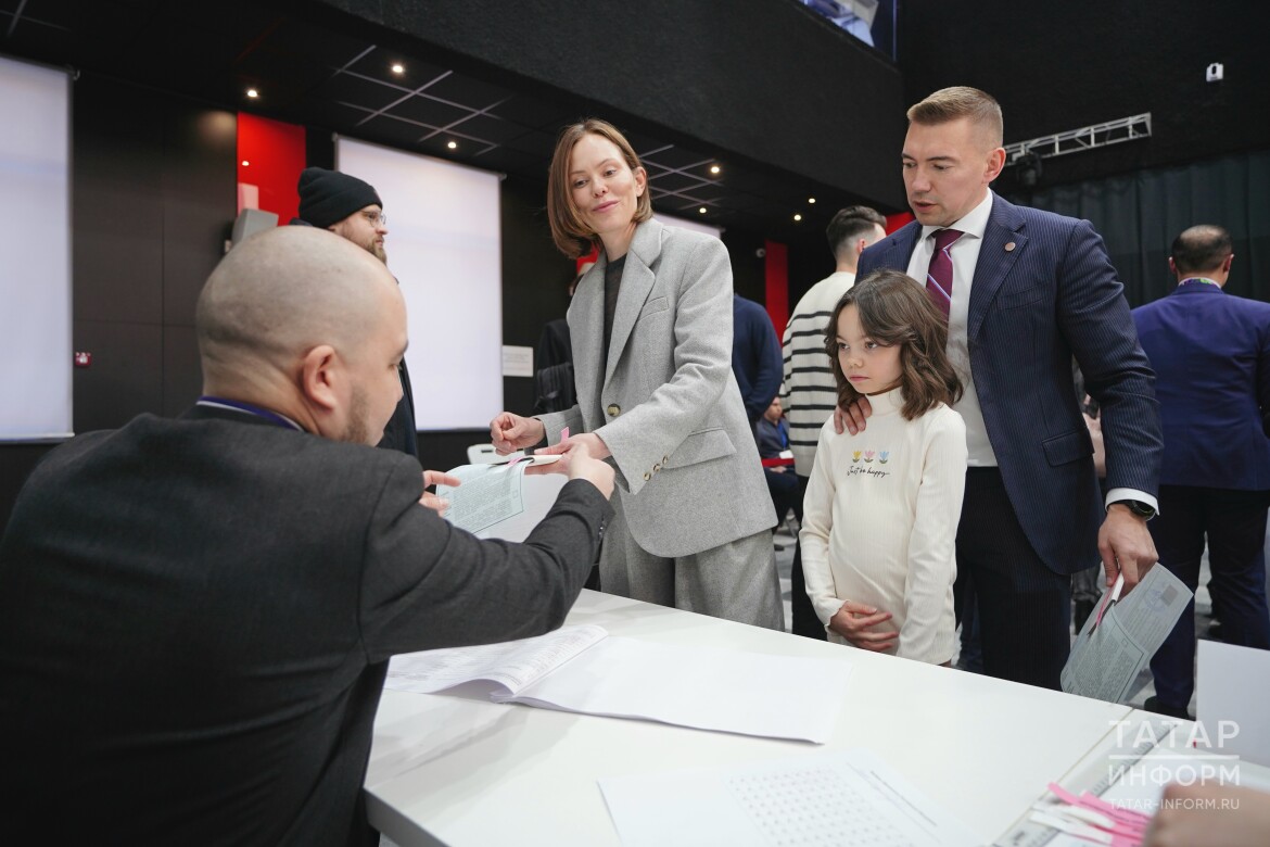 Мэр Иннополиса Руслан Шагалеев вместе с женой заполнили бюллетени, а их маленькая дочь помогла положить их в урну для голосования
