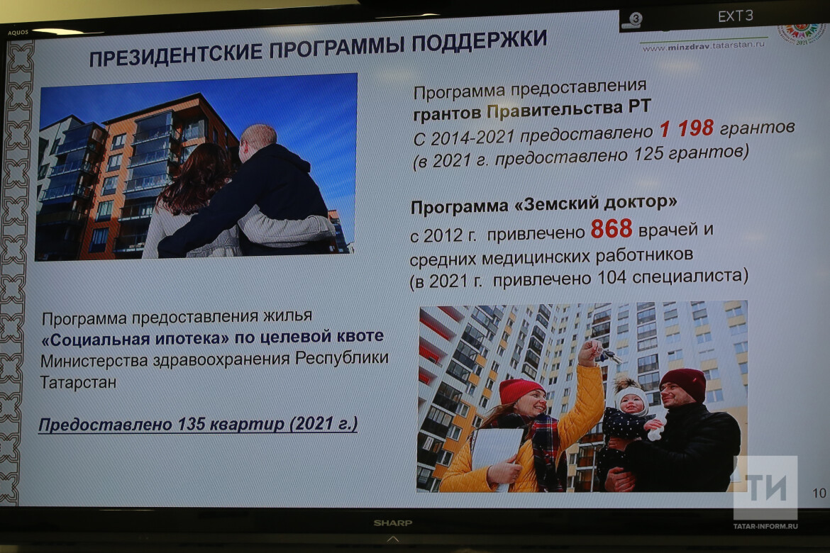 В Татарстане сегодня работают федеральные программы «Земский доктор» и «Земский фельдшер», по ним привлекли 868 врачей и средних медработников, в этом году начали работать еще 104 специалиста.