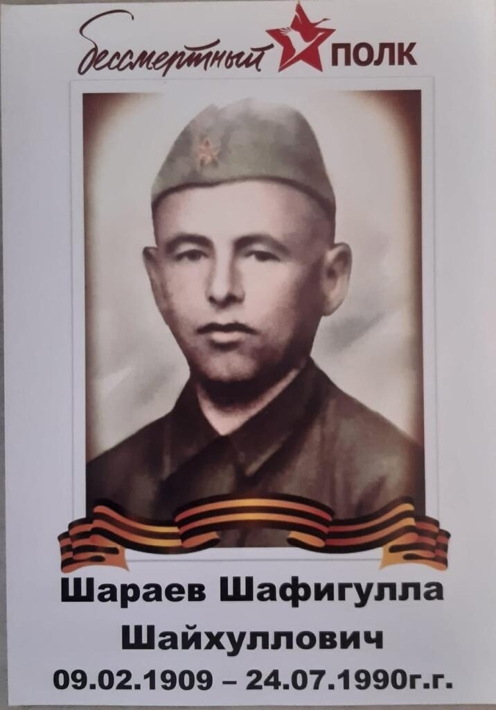 Другой дедушка, Шафигулла Шараев родился в 1909 году, также в Татарской АССР, Буинский район, деревня Сорок Сайдаки.