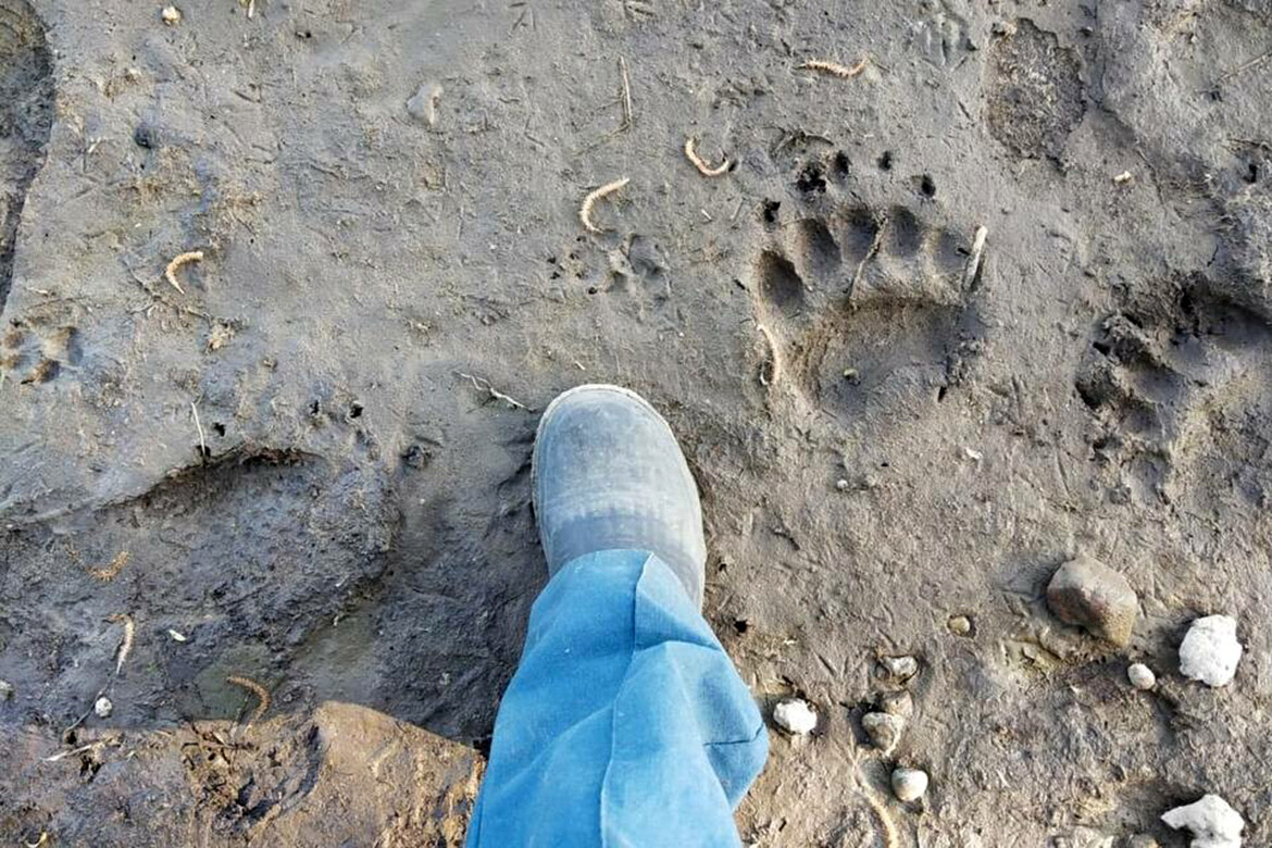 А если бы не собака? От неожиданной встречи в лесу с хозяином тайги никто не застрахован. Не далее как две недели назад я тоже рано утром поехал на машине за грибами в сторону заброшенной пасеки и в нескольких сотнях метров от села приметил на песке свежие следы медведицы с медвежатами. Наиболее четкий след сфотографировал. На днях один из местных жителей встретил зверя на лесной дороге, соединяющей наше село с «большой землей». На этой же дороге прошлым летом я и сам, будучи за рулем, встретил медведя. Метрах в пятидесяти от остановившейся машины мишка встал на задние лапы (признак его любопытства), постоял немного и степенно удалился в березняк.