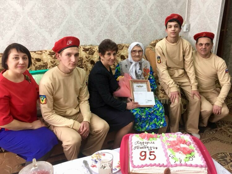 Ветерана поздравили замглавы района Равия Каримуллина, начальник районного отдела социальной защиты Светлана Замалиева и юнармейцы. Они пожелали долгожительнице крепкого здоровья, благополучия.