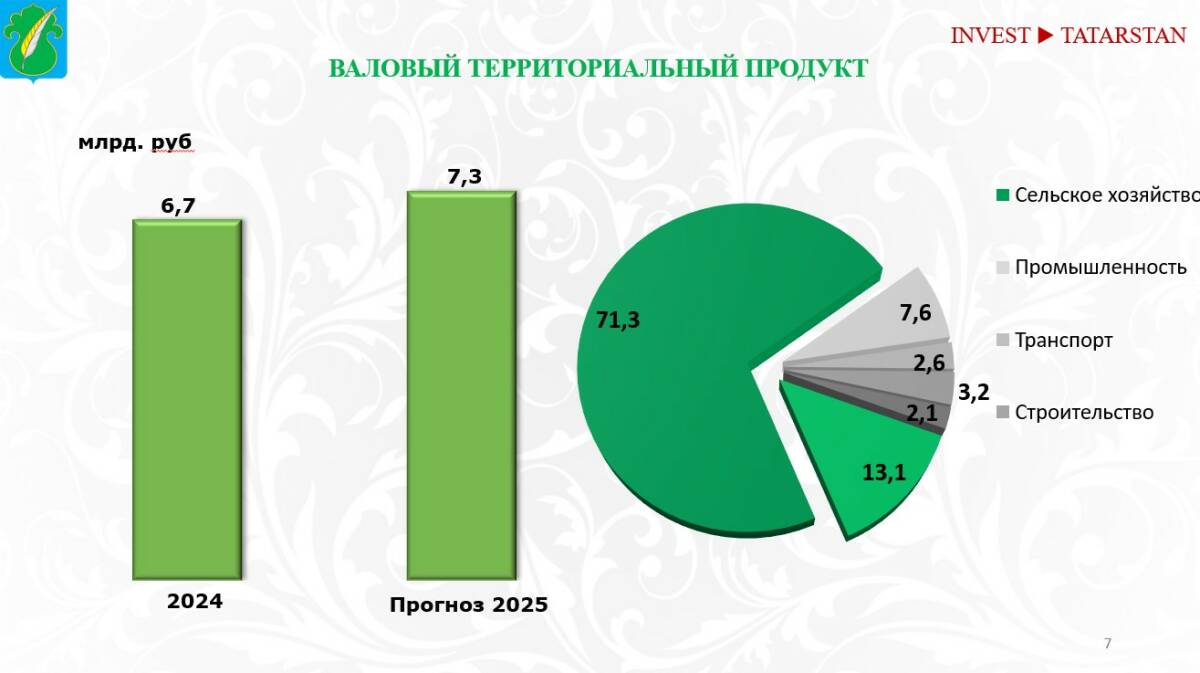 Валовой территориальный продукт (ВТП) района за 2024 год составил 6,7 млрд рублей, в 2025-м прогнозируется рост до 7,3 млрд. В районе зарегистрировано 244 субъекта малого и среднего предпринимательства и 965 самозанятых граждан. Среднемесячная заработная плата составляет 63 тыс. рублей, уровень безработицы – один из самых низких в республике, всего 0,08%, или 5 человек.