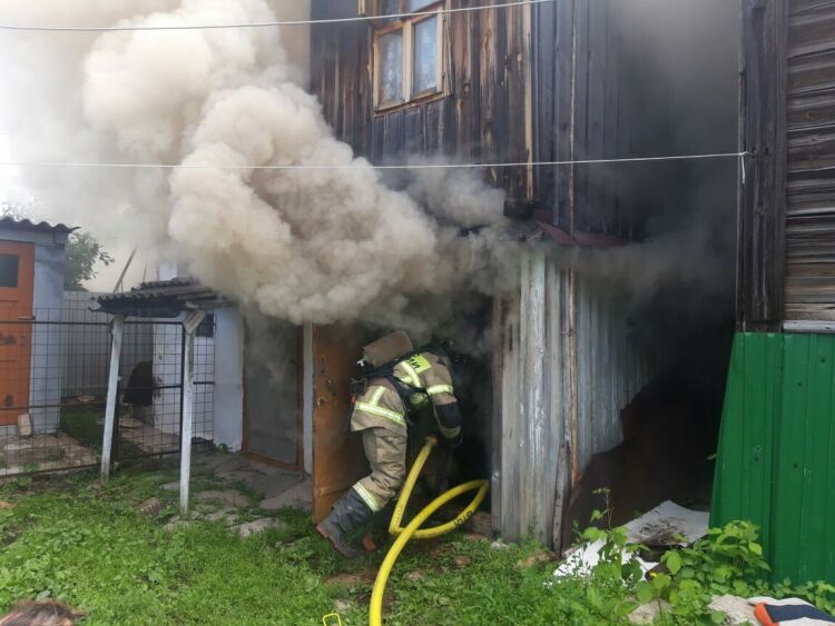 Сегодня в половине десятого утра в Елабуге поступило сообщение, что на улице Большая Покровская в одноэтажном жилом доме № 55 на цокольном этаже горит квартира.