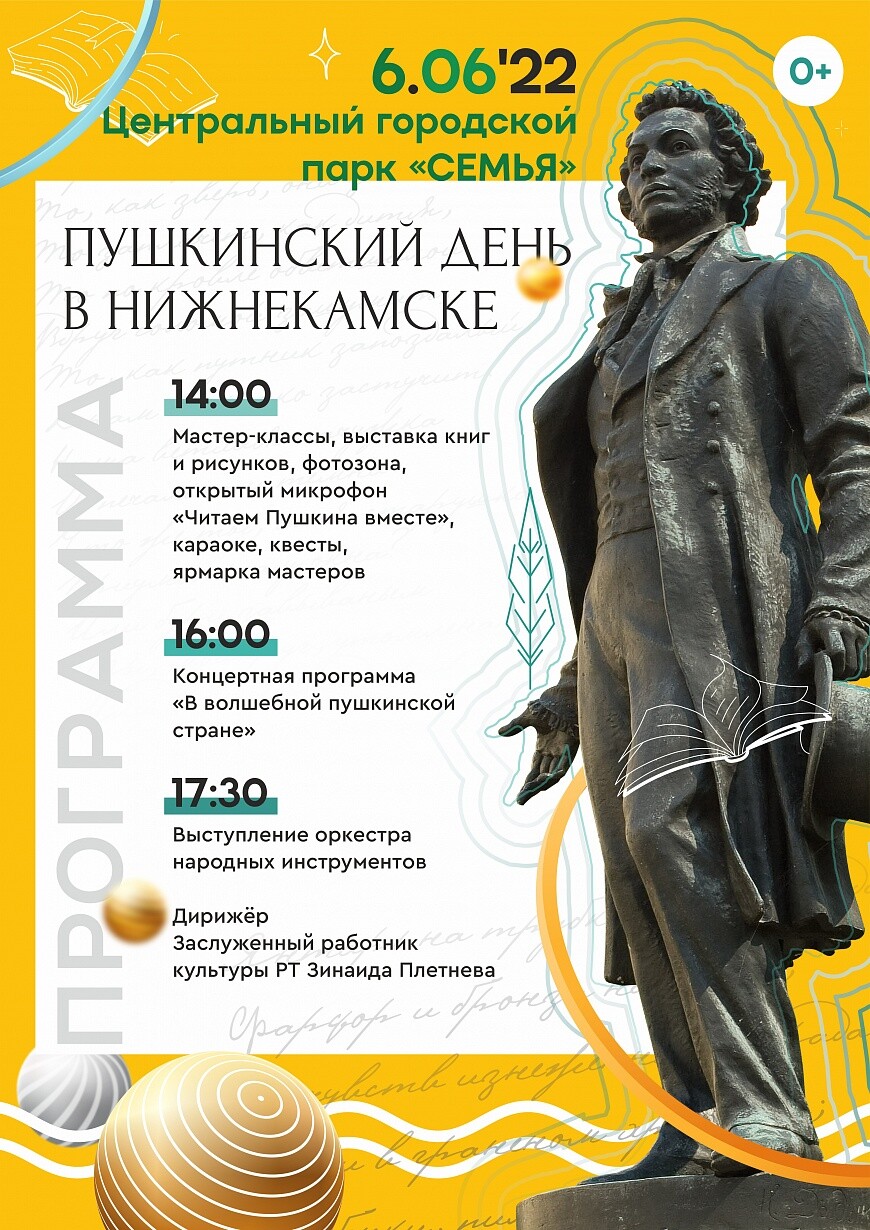 Жителей и гостей Нижнекамска приглашают принять участие в праздничных мероприятиях, приуроченных к Пушкинскому дню. Праздник состоится 6 июня в городском парке «Семья».