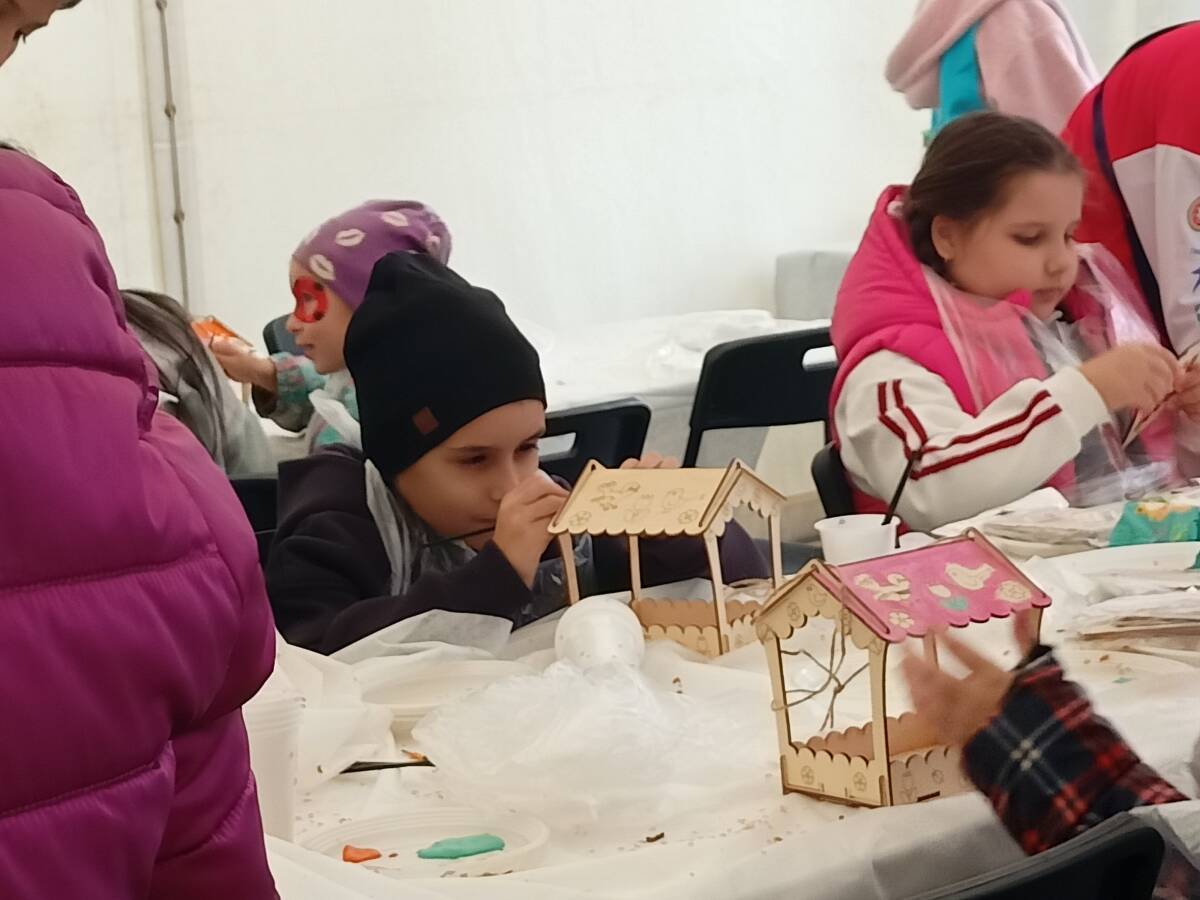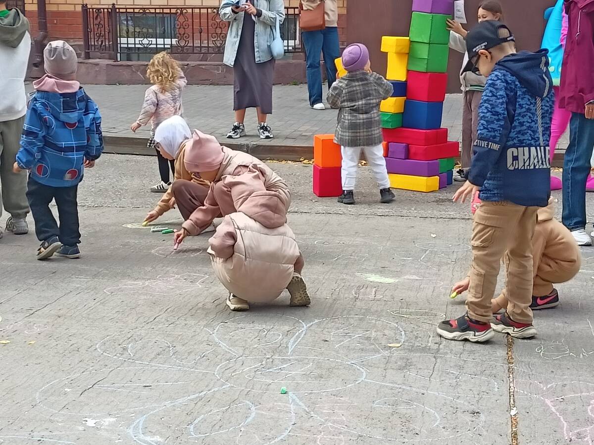 В игровой зоне царила ещё большая атмосфера радости и счастья. Дети раскрашивали кормушки для птиц, заводили «дневники добрых дел», выполняли квесты, рисовали мелками на асфальте, ели сладкую вату. Аниматоры с удовольствием фотографировались с ними и пускали мыльные пузыри.