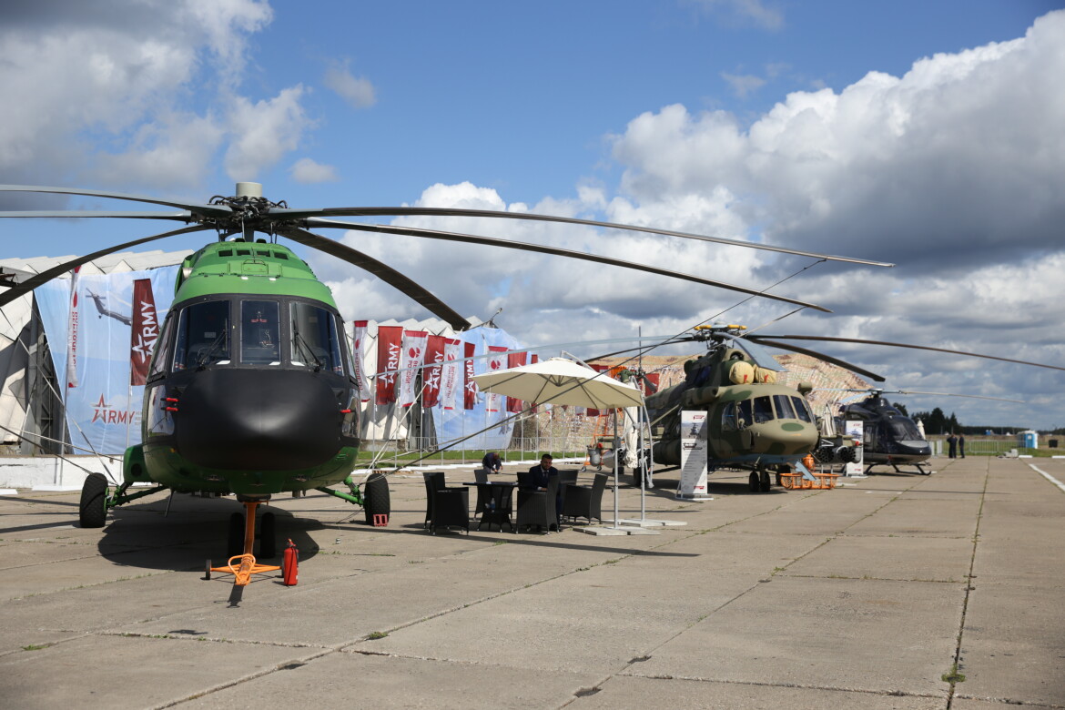 На аэродроме Кубинка — внешней экспозиции холдинга «Вертолеты России» (входит в Госкорпорацию Ростех) — КВЗ представил военно-транспортные Ми-17В-5 и Ми-38Т и вертолет премиум-класса Ансат Aurus.
