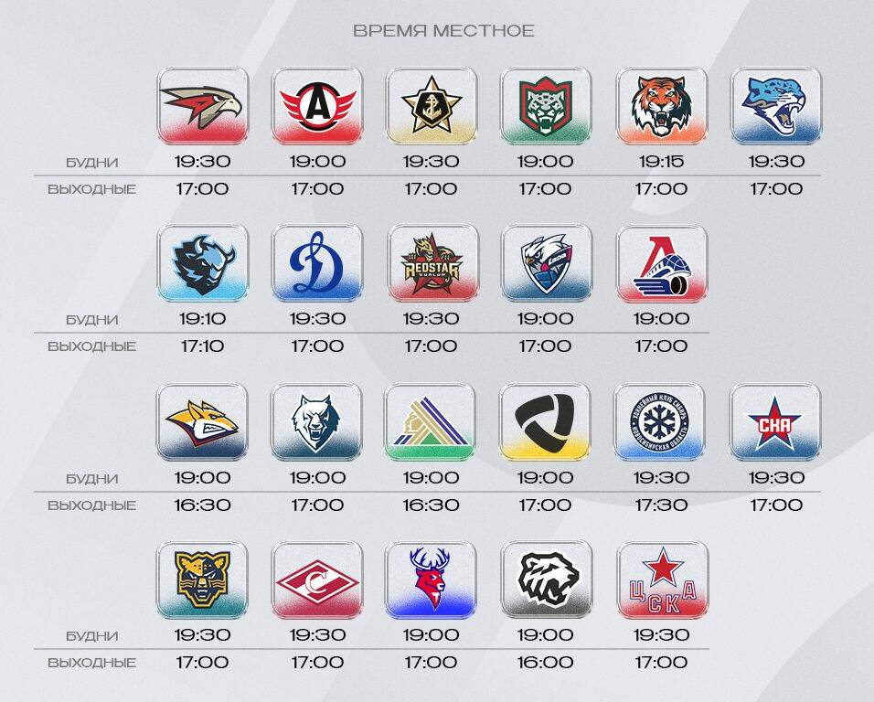 Континентальная хоккейная лига назвала время для всех клубов, в которое те будут начинать домашние матчи в предстоящем сезоне.
