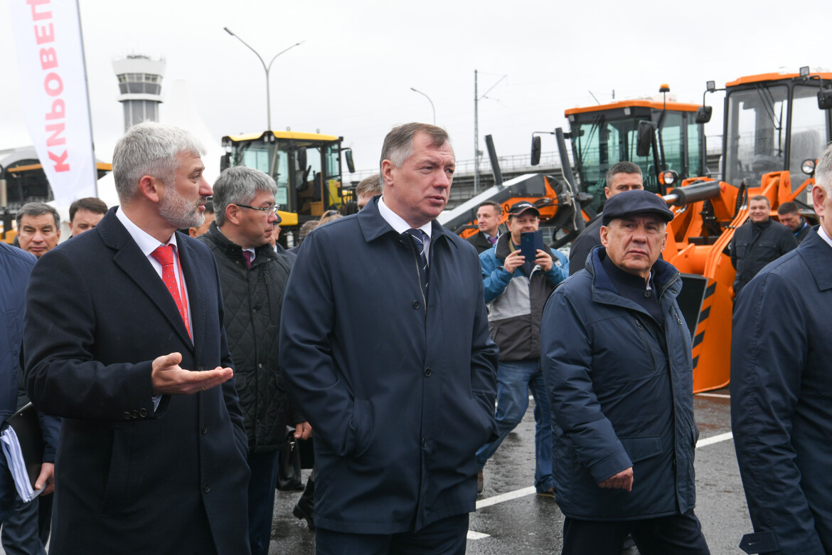 В обходе стендов кроме Марата Хуснуллина и Рустама Минниханова приняли участие глава Республики Бурятия Алексей Цыденов, губернатор Курской области Роман Старовойт, председатель правления госкорпорации «Автодор» Вячеслав Петушенко. Обход выставки гости начали с павильона №3, где были собраны образцы самой современной дорожно-строительной техники и пассажирского автотранспорта.