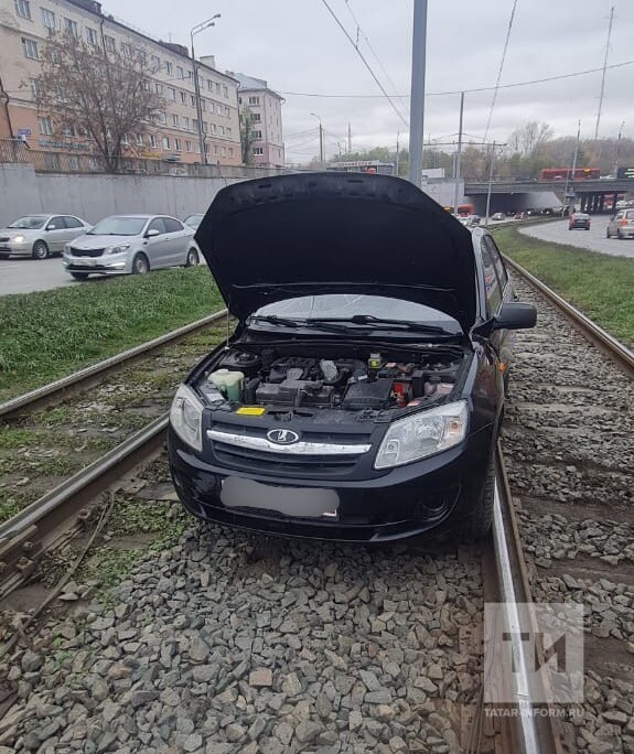 «Лада» вылетела на трамвайные рельсы после столкновения с «КАМАЗом» в Казани