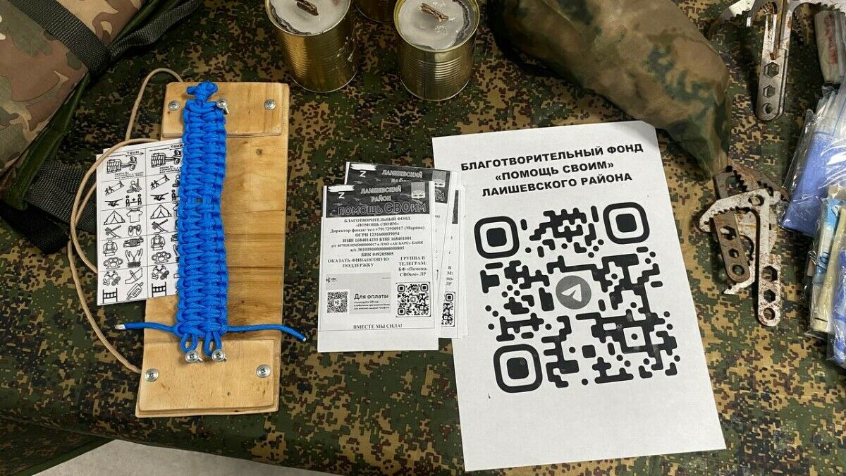 Ранее «Татар-информ» сообщал, что волонтеры Лаишевского района плетут браслеты выживаемости для бойцов СВО. Больше о работе фонда можно узнать по QR-коду (фото ниже).