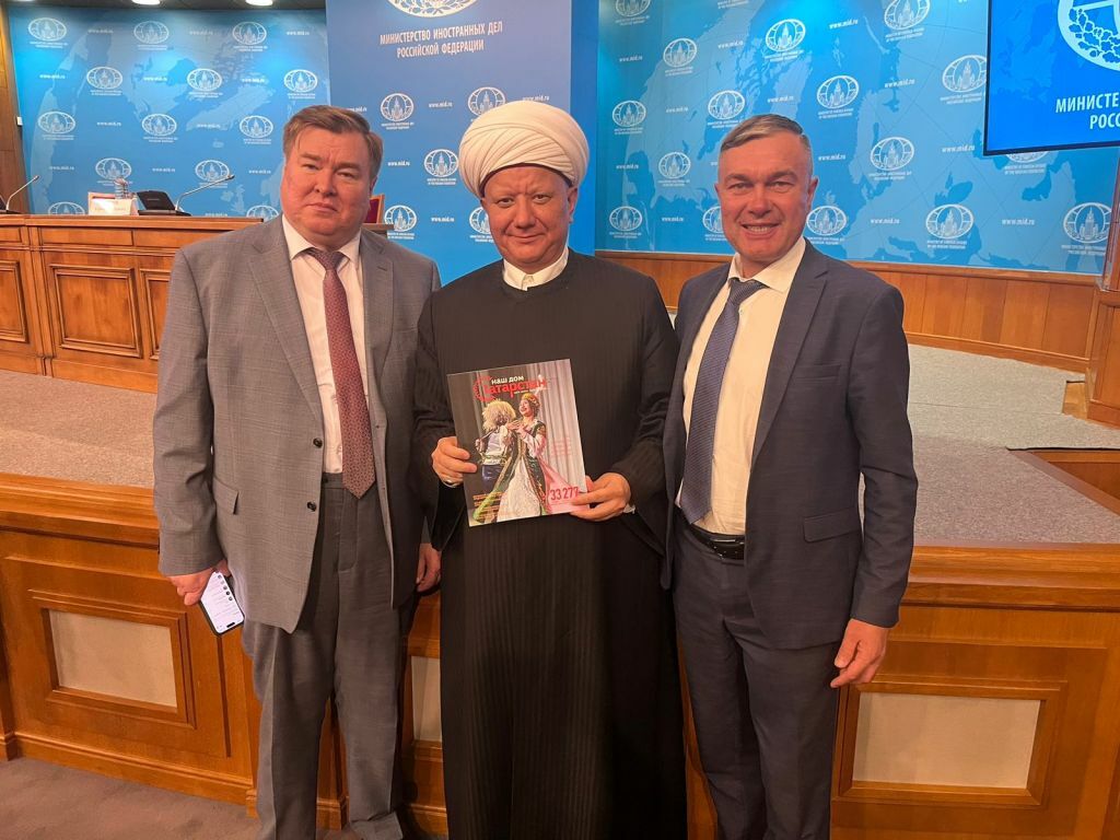 Ренат Валиуллин вручил Сергею Лаврову и другим участникам мероприятия номера журнала «Наш дом Татарстан», который рассказывает о большой работе, проводимую в республике в сфере межнациональных отношений.