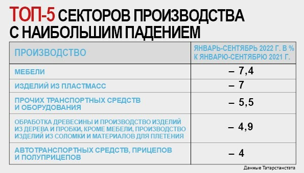 В пятерке сильнее всего упавших за девять месяцев года – отрасли, ориентированные главным образом на спрос со стороны бизнеса. Хотя в производстве изделий из пластмасс речь идет в том числе об оконных и дверных блоках, которые потребляются и частными домохозяйствами; впрочем, в этом году обновление окон в квартирах жителей городов Татарстана идет явно медленнее, чем ранее. Неудивительно, что конкретно по этим позициям в Татарстане фиксируется сокращение выпуска, хотя объемы работ в строительстве и увеличились за 9 месяцев на 13% (но ведь и цены выросли, да и учитывается здесь не только жилищное строительство). Еще в большей степени отрасль могла просесть и из-за сокращения производства в автопроме, где также используется множество пластмассовых изделий.
