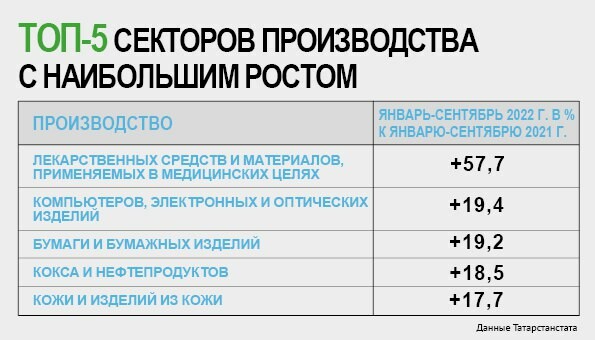 В пятерке тех, кто больше всего прибавил за три квартала, производства лекарственных средств и материалов, применяемых в медицинских целях, компьютеров, электронных и оптических изделий, бумаги и бумажных изделий, кокса и нефтепродуктов, а также кожи и изделий из кожи. Более чем на 14% выросло и производство в металлургии.