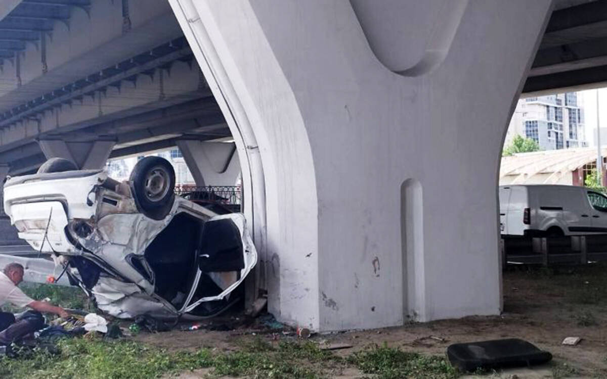 Не справившись с управлением на большой скорости, «Лада» заскочила на бордюр, после чего влетела в опору моста и перевернулась