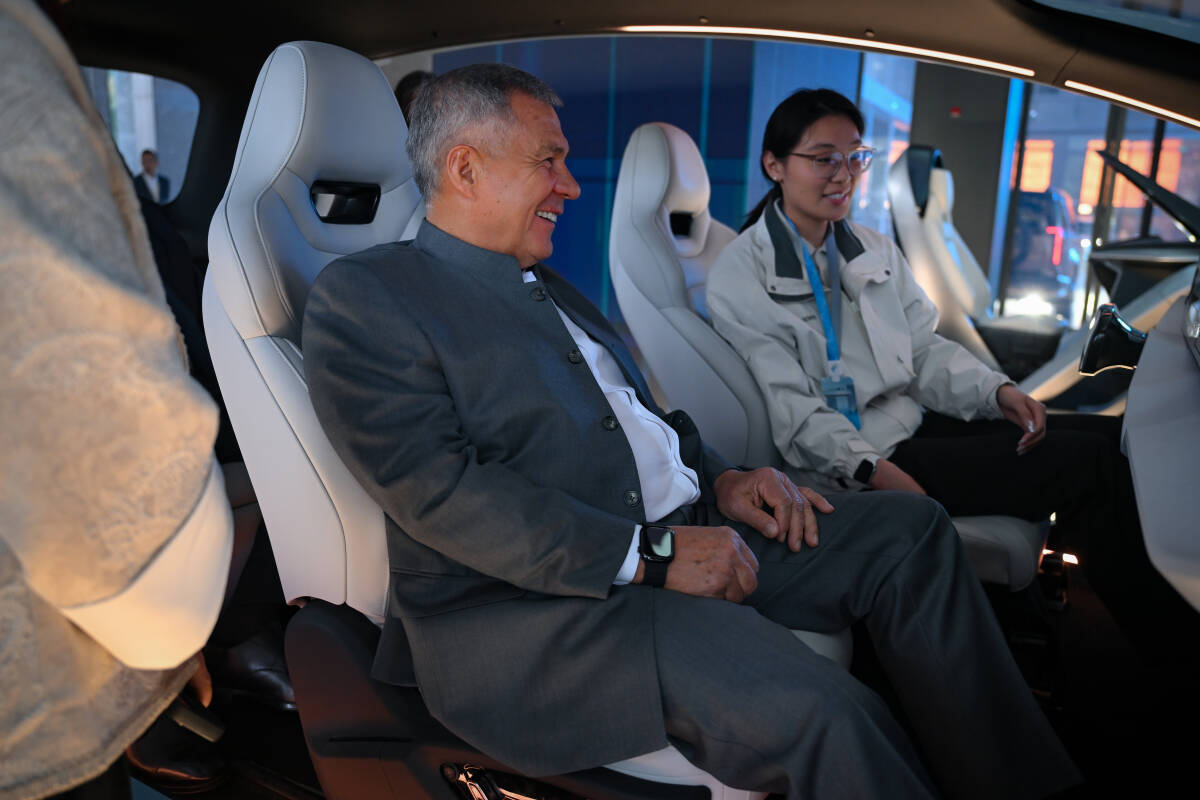 Кроме того, татарстанский лидер протестировал новейший китайский электромобиль с технологией электронного рулевого управления Steer-by-Wire от компании Shibao.