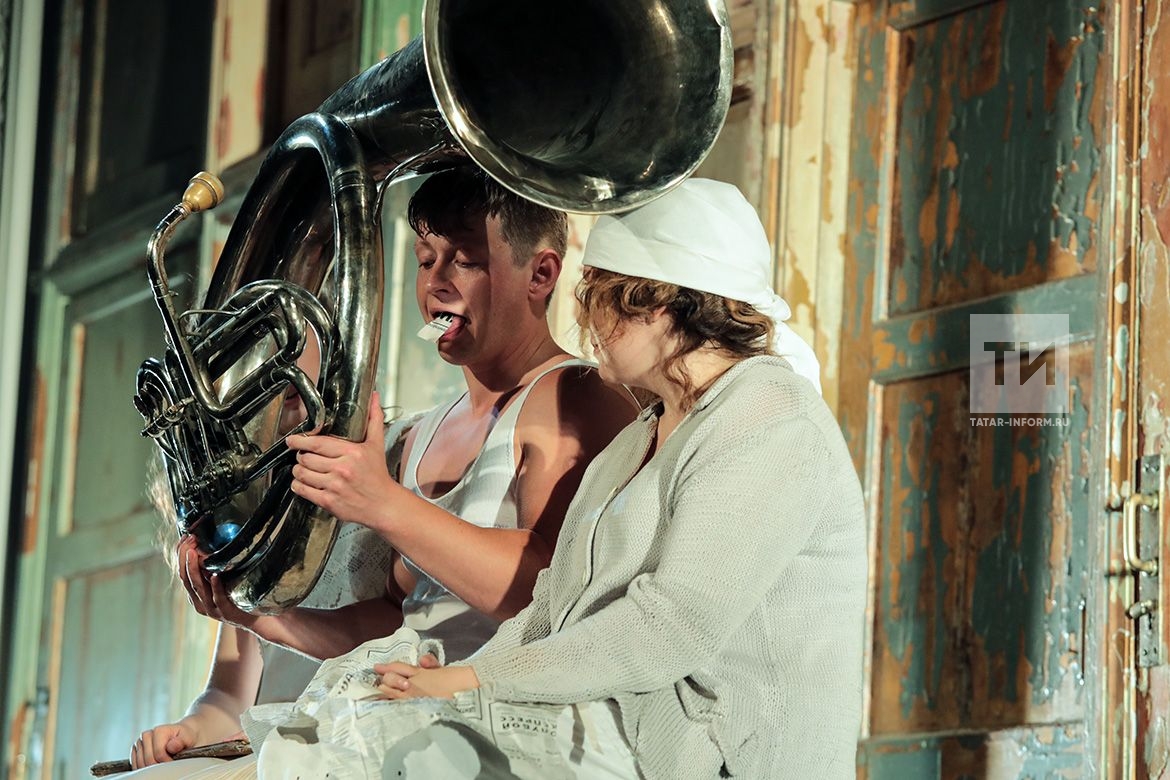 Ливерная колбаса, духовой оркестр и гроб на сцене: в Казани показали «Самоубийцу» режиссера Женовача