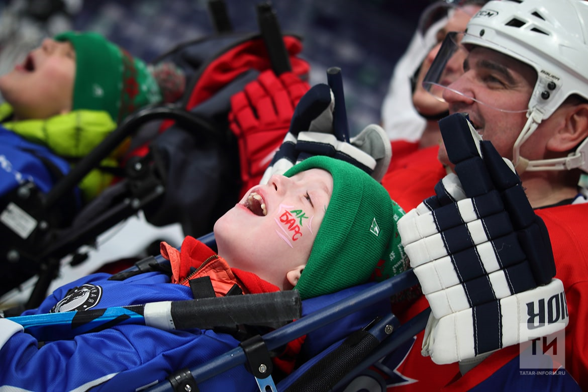 Накануне, 15 февраля, в рамках акции «Хоккей каждому» на лед вышли дети с ограниченными возможностями здоровья из Казани и Нижнекамска, а также игроки «Ак Барса», «Нефтехимика», «Локомотива» и «Северстали».