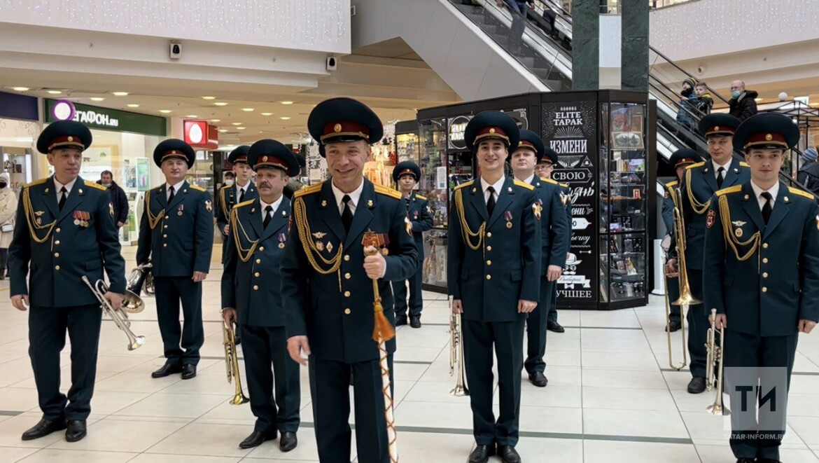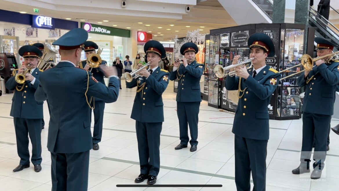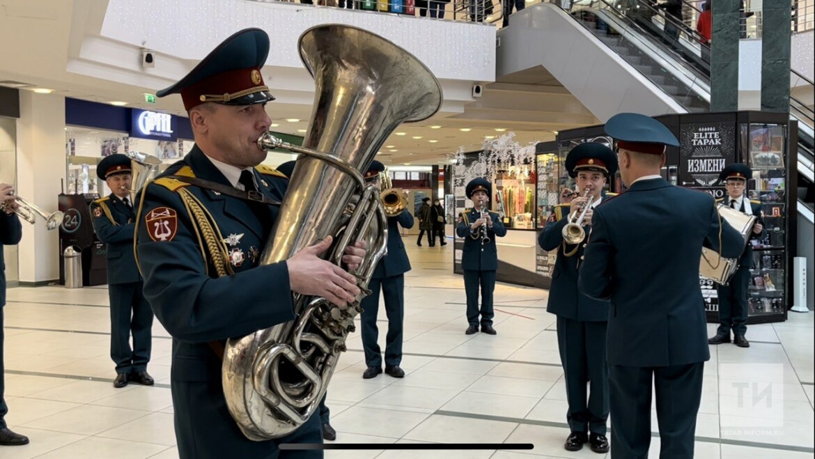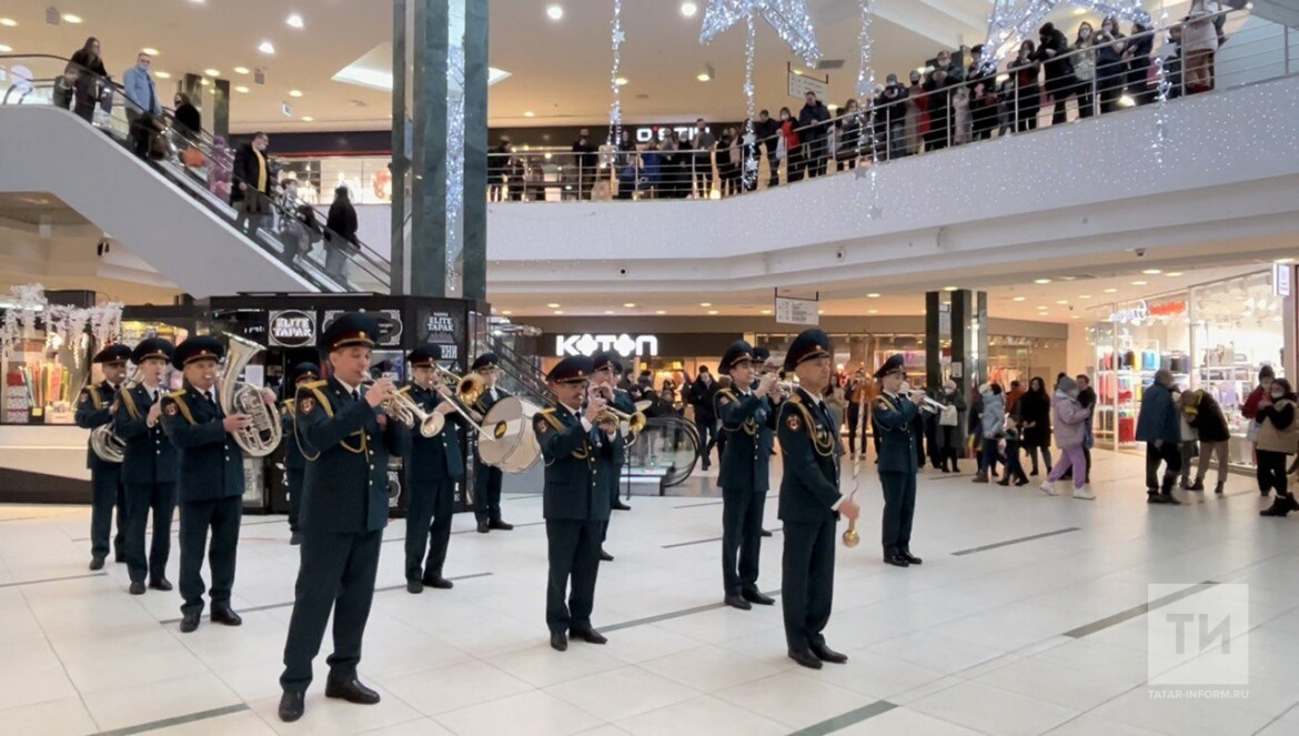 Военный оркестр Росгвардии Татарстана устроил музыкальный флешмоб, посвященный Дню защитника Отечества. Акция прошла в ТЦ «Тандем». Музыканты оркестра исполнили несколько популярных произведений военных лет для всех посетителей.