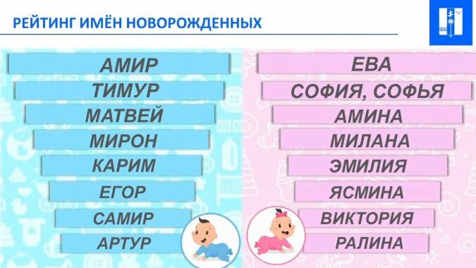 Чаще всего мальчиков в Нижнекамске называют Амирами, Тимурами и Матвеями, а девочек — Евами, Софиями и Аминами.