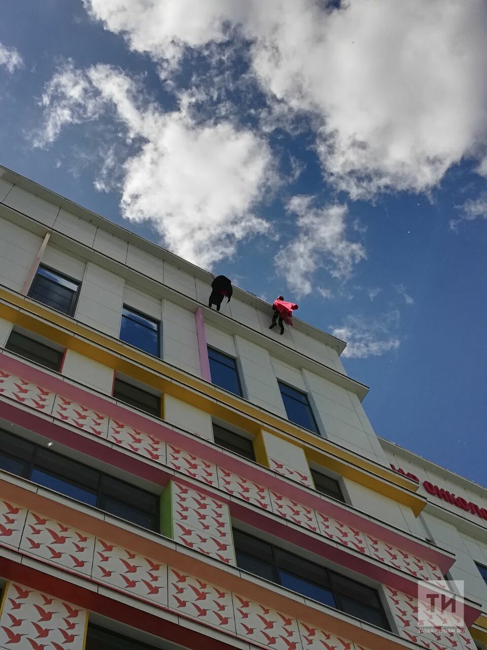 Спасатели в плащах супергероев спустились с крыши клиники и наклеили на окна палат большие сердца.